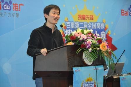 主持人简短开场及嘉宾介绍后,周德群院长致辞,周院长通过互联网对当今时代的影响,强调了搜索引擎的重要性,鼓励经管学子积极参加大赛,培养自己综合素质,为未来互联网行业储备人才积蓄力量。接着,段建总裁发表了热情洋溢的演讲,分别用“从‘商’的角度看百度”、“搜索引擎是一扇打开认识百度的大门”和“90后应该到最激情、最市场、最创新的行业去奋斗”三句关键语阐述,提出在营销方面,企业应从千千万万潜在用户中寻找销售对象,并对百度产品做了简单介绍。之后,百度首席讲师刘伟风趣幽默的向在场学生讲述了大数据时代的营销变革。他以自己的人生经历作为开头,讲述从安稳的政府工作单位跳槽至互联网行业的初衷,并用百度大数据的挖掘与对比、数据的分析与预测向大家展示了互联网时代大数据的价值与实用性,其列举了百度筷子、百度广告精准营销策略,给大家带来了极大的震撼,讲话的最后,他提出百度营销大学是为了向社会推广营销理念和培养互联网人才,指出它包含“师资培训”、“学生实训”、“竞赛”和“实习/就业”四个部分,鼓励大学生积极加入百度营销大学。宣讲会尾声,刘全力先生简洁明了地为大家介绍了营销大赛的背景、目标、组织结构和参赛时间等,并与现场观众互动答疑。