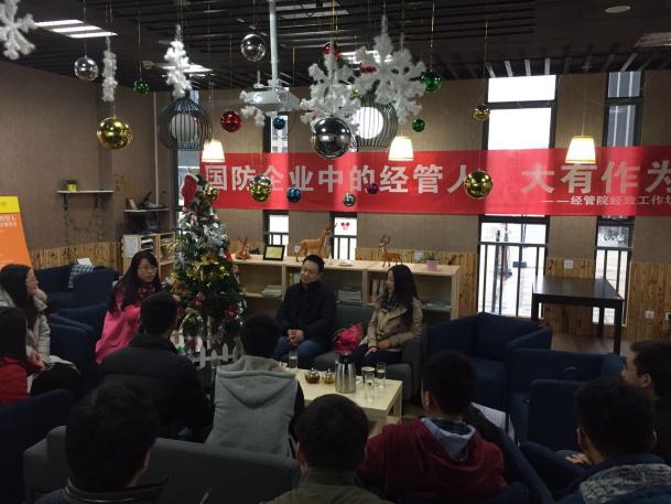 3月20日下午,BB贝博艾弗森官方网站在学院W&M咖啡屋进行了经致工作坊启动仪式,并邀请中航工业成都飞机工业(集团)有限责任公司人力资源部贾宇航主任和宋颖老师,以“国防企业中的经管人,大有作为”为主题,进行了近两个小时的主题交流,学院副院长朱建军、党委副书记许静、管理科学与工程系系主任马静、负责学院职业生涯规划教育的辅导员庞依达与近二十名本科生研究生参加了此次工作坊。