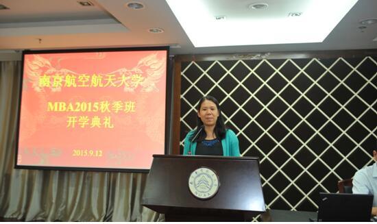 接着,夫妻新生代表“金童慧女”童德、王慧分别代表新生做了发言。夫妇二人同时考取了南航MBA,演绎了学习型家庭的一段佳话,更难能可贵的是妻子王慧联考成绩还拔得了本届新生的头筹,与吴志华同学并列获得南航MBA2015年联考第一名。二人代表新生回应了周院长提出的治学要求,对于来之不易的学习机会倍感珍惜。代表新生们表态:会认真学习管理知识,将课堂所学理论充分应用到本职工作中去,最终实现理论水平和工作能力的双提高,从而有效提升个人价值;争取做到今天我以南航大为荣,明天南航大以我为骄傲,努力把自己培养成学有专攻、富有远见、高尚精明的现代职业经理人,用孜孜不倦来书写美丽的人生画卷,来感恩母校,回报母校。