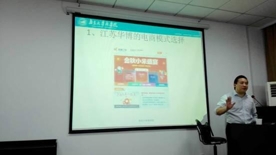 首先,郑称德教授以淘宝和京东为例生动地阐述了单边市场与双边市场的区别以及两种市场中分别存在的网络效应与间接网络效应。郑教授从多方面对两种模式进行比较,提出在电子商务市场,平台模式较之自营模式有天然的竞争优势的观点。他分析了电子商务市场如何提供产品能使企业获利更多。通过“先有鸡还是先有蛋”——卖方和买方谁更重要的问题引出了阿里对买方的全面服务,分析电商市场企业生存的法则。最后,郑教授引用了江苏华博的电商模式选择与零号线的创始与企业文化营造的案例总结提升了这次交流报告。郑教授表示,十分期待与南航进行更多的交流,在交流中促进双方共同发展。