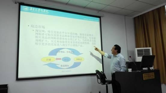 10月27日下午南京大学商学院教授、南京大学电子商务研究院院长、江苏省互联网服务学会理事长郑称德教授为学院师生做了题为“电子商务的自营模式VS平台模式——双边市场理论”的学术报告。学院管理科学与工程系系主任马静、电子商务专业部分老师、研究生及本科生参加了本次报告会。报告会由系副主任米传民主持。