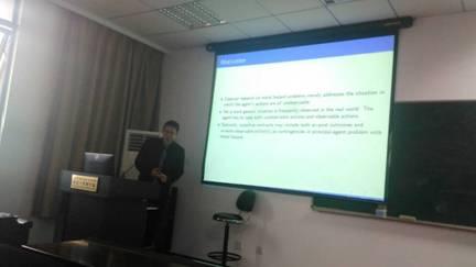 2015年11月5日下午3点半,在BB贝博艾弗森官方网站大楼704报告厅,南京大学陈煜博士来学院,作了题为“Optimal Contracts with the Inclusion of Observable Actions in Generalized Moral Hazard Problems”的报告。副院长王英,区域经济与产业经济研究所所长江可申,智能决策与风险分析研究所的陈晔、陈洪转、李杰,区域经济与产业经济研究所的苗建军、张伟、马晓平等老师以及两所的全体研究生参加了此次报告。