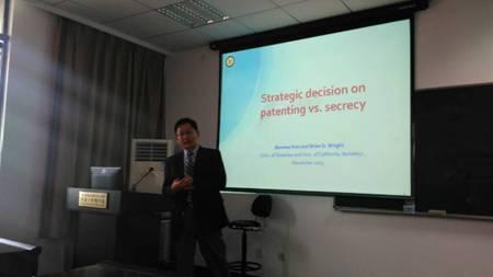 2015年11月5日下午2点,在BB贝博艾弗森官方网站大楼704报告厅,加拿大滑铁卢大学管理科学系的Bonwoo Koo教授来学院,作了“Strategic decision on patenting vs. secrecy”的报告。副院长王英,区域经济与产业经济研究所所长江可申,智能决策与风险分析研究所的陈晔、陈洪转、李杰,区域经济与产业经济研究所的苗建军张伟、马晓平等老师以及两所的全体研究生参加了此次报告。