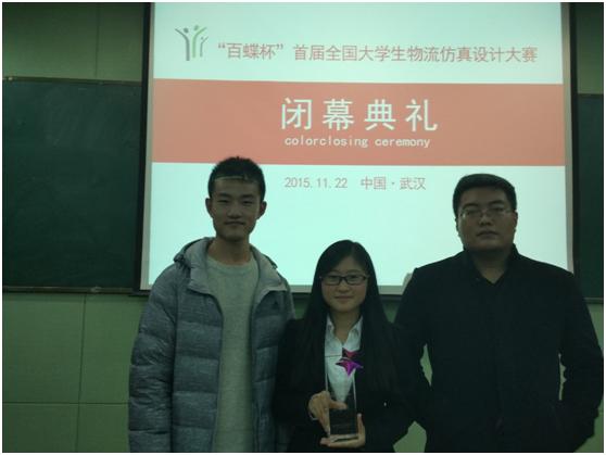 11月22号下午3点,2015年“百蝶杯”首届全国大学生物流仿真设计大赛落下帷幕。来自20个省38支代表队的参赛队伍齐聚中南政法大学展开激烈的角逐。决赛场上,38支队伍各显神通,力求完美获得相关企业人员的认同。我校学子也不甘落后,由蔡佳佳、李静远及蒋子涵组成的“Victory Rush”队代表我校出赛,并斩获首届全国大学生物流仿真设计大赛季军。