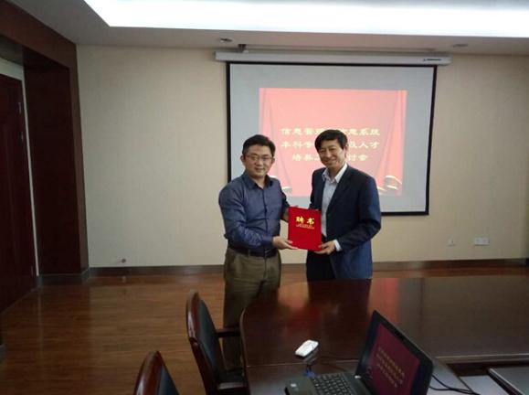 信息管理系专业负责人马静致欢迎词,并简单介绍此次会议的目的,随后由BB贝博艾弗森官方网站院长周德群为苏新宁,朱晓东,吴毓雄三位校外委员颁发了聘书。