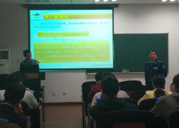 2016年4月26日下午两点,空军驻中航工业洪都航空工业集团军事代表室高级会计师雷定权大校受贝博官网灰色系统研究所邀请,在BB贝博艾弗森官方网站704室,做了题为“某型军用飞机购置目标价格论证、控制及审核全过程分析”的报告。