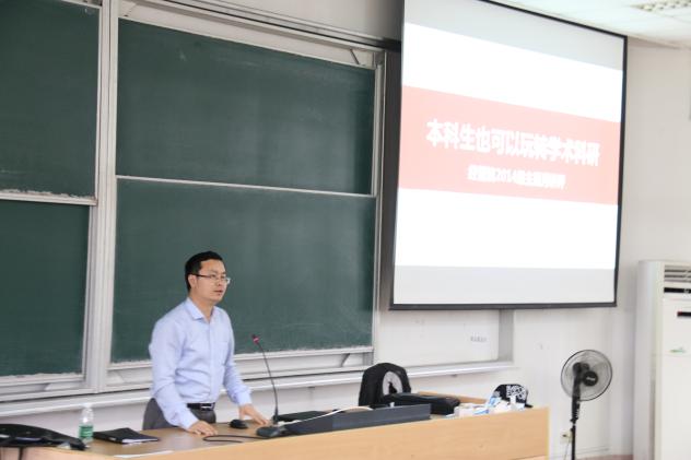 为激发学院本科生参与学术科研的热情,提升求实精神、创新能力等素质能力,5月27日,贝博官网14级邀请教务处副处长朱建军、教务处实践培养科科长袁磊开展了“本科生也可以玩转学术科研”的主题宣讲会。
