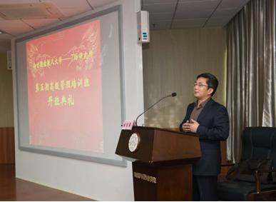 5月23日上午,BB贝博艾弗森官方网站迎来了第七一六研究所高级管理培训班的全体学员,上午8时在经管院报告厅305举行了隆重的开班典礼,第七一六研究所人力资源部主任刘全、BB贝博艾弗森官方网站院长周德群、教育培训中心副主任杜刚等出席典礼。周德群致开幕词,他首先代表学院对各位学员的到来表示了热烈欢迎,并简要介绍了南航大以及经管院的发展情况,他说南航和第七一六研究所有着深厚的友谊,此次培训经管院集中了优质的师资,教育培训中心进行了认真的组织和安排,希望学员们能学有所获。周德群对学员们提出了三点期望:一是多问;二是多思;三是多交流。随后,第七一六研究所学员代表王学宝发言,他对南航大经管院提供这么好的学习机会表示感谢,并表态在这一周时间里,学员们会带着问题来学习,不断充实自己,将所学的知识运用到工作中去,蓄积能量,回报社会。典礼最后,刘全代表第七一六研究所表达了对南航大及经管院的感谢,并对学员在此次培训中提出三点要求:一是遵章守纪,珍惜机会,好好学习;二是注重课后纪律,学习生活规范条理;三是注意安全,提高各项效率。