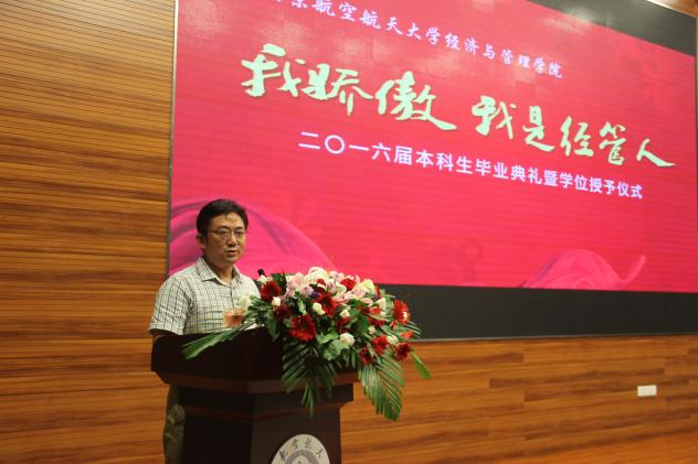 6月20日晚,“我骄傲,我是经管人”BB贝博艾弗森官方网站2016届本科生毕业典礼暨学位授予仪式在将军路校区一号楼报告厅举行。经管学院党委书记焦宏图,院长周德群,教务处副处长朱建军,学院副院长张卓、王英、周鹏,党委副书记许静,管理科学与工程系主任马静,工商管理系主任王子龙,经济系主任邓晶,教师代表、院友代表、家长代表和全体毕业生出席了典礼。