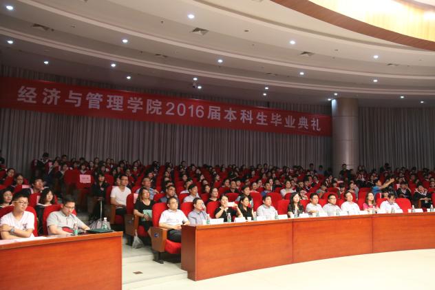 感人肺腑的毕业典礼后进行了庄重的学位授予仪式,仪式由学院党委副书记许静主持,学院院长周德群,教务处副处长朱建军,副院长张卓、王英、周鹏,管工系教授马静,工商系教授陈万明、王子龙,经济系主任邓晶、教授江可申,在学术权杖见证下,配合主持人一一念出的学生名字,分别给所有毕业生授予了学位证书。