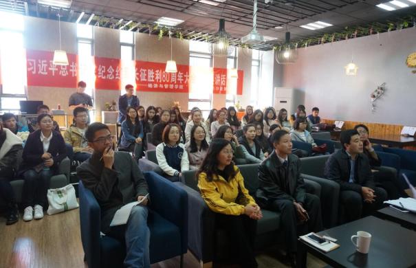 11月1日,BB贝博艾弗森官方网站第51期“红周二”党员沙龙举行,40余名本科生党员、发展对象、入党积极分子齐聚一堂,与党委组织部副部长高小泽、马克思主义学院副院长缪国龙、BB贝博艾弗森官方网站党委书记焦宏图、副书记许静等嘉宾一起,就习近平总书记在纪念红军长征胜利80周年大会上的讲话进行了学习和讨论。