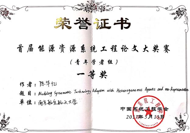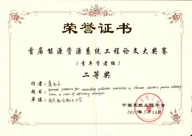 近日,在第二届中国能源资源系统工程学术年会上,BB贝博艾弗森官方网站师生取得了可喜的成绩。其中,陈华忆老师的论文“Modeling systematic technology adoption with heterogeneous agents and one representative”获得青年学者组一等奖,虞先玉老师的论文“Optimal pattern for controlling pollution emissions in Chinese electric power industry from a view of efficiency analysis” 获得青年学者组二等奖,张露平博士生的论文“A non-compensatory approach to assess low-carbon city performance in China”获得学生组一等奖,刘笑博士生的论文“Flying into the future: Scenario analysis of CO2 emissions from China’s civil aviation”获得学生组三等奖。