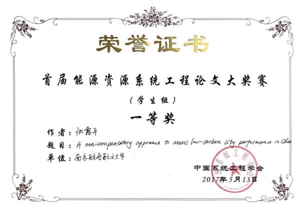 据悉,此次会议有来自海内外30多个科研机构和高等院校的近300名专家学者出席,以论文盲审初选和现场报告专家打分的综合方式评选出首届能源资源系统工程论文大奖,获奖比例约占论文全文投稿总数的20%。此次能源资源系统工程论文大奖赛共设有17个奖项,其中青年学者组设一等奖1名、二等奖2名、三等奖3名,学生组设一等奖1名、二等奖3名、三等奖7名。经过激烈的竞争,贝博官网师生最终共获奖4项,分别揽括青年教师组和学生组头筹,这是对贝博官网能源软科学研究团队科研工作的充分肯定。