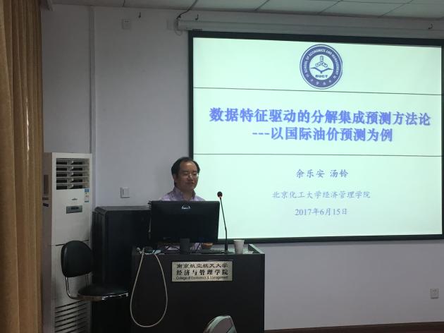 2017年6月15日上午,北京化工大学经济管理学院院长余乐安教授应贝博官网能源与环境经济研究所邀请,在BB贝博艾弗森官方网站706室做了题为“数据特征驱动的分解集成预测方法论——以国际油价预测为例”的精彩学术报告。报告由贝博官网周鹏教授主持,王群伟、查冬兰、虞先玉、吴菲等老师和研究生参加了此次报告。