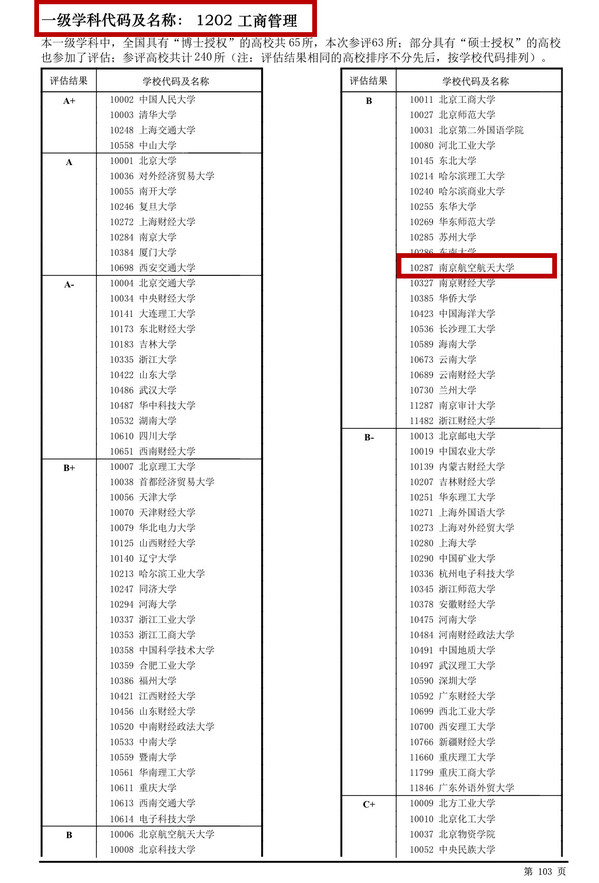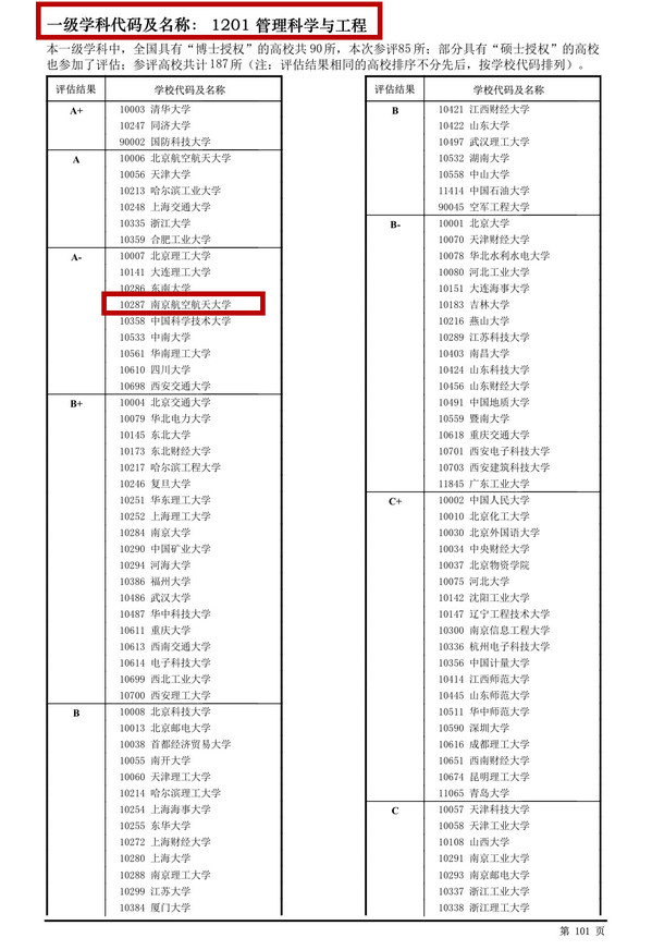 12月28日,教育部学位与研究生教育发展中心公布了全国第四轮学科评估结果,经管学院管理科学与工程学科再度攀升,进入全国A-档行列,排位全国前5.3%,进入前10,与力学、机械工程一起成为南航进入A-档“三甲”,工商管理学科也突破性地进入全国B档行列,排位全国前20%,进入前50。其中管理科学与工程学科参评高校共计187所(博士授权高校85所),工商管理学科参评高校多达240所(博士授权高校63所)。