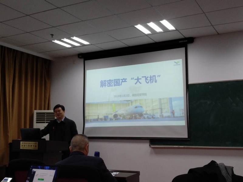 2018年1月2日下午3:00至5:00,应BB贝博艾弗森官方网站灰色系统研究所刘思峰教授的邀请,中国商飞公司C919项目部部长袁文峰在BB贝博艾弗森官方网站704会议室作了精彩的报告,为大家解密国产大飞机项目。报告由刘思峰教授主持,方志耕、菅利荣、袁潮清、谢乃明等老师及博硕研究生、本科生现场聆听。