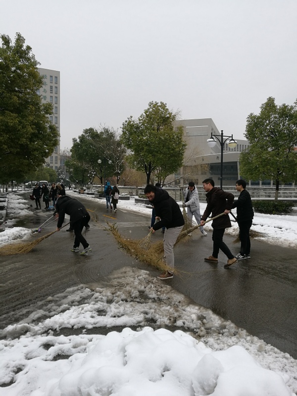 2018年南京的第一场大雪不期而至,大量的降雪造成校内各处积雪严重,影响师生的正常出行。1月5日上午,BB贝博艾弗森官方网站40多名党员同学自发组成扫雪小分队,投入扫雪行动。大家拿着铁锹、大扫把纷纷出动,热火朝天地清扫着BB贝博艾弗森官方网站的包干区——从四食堂至经管学院门口的路段,保障师生校内的安全出行。