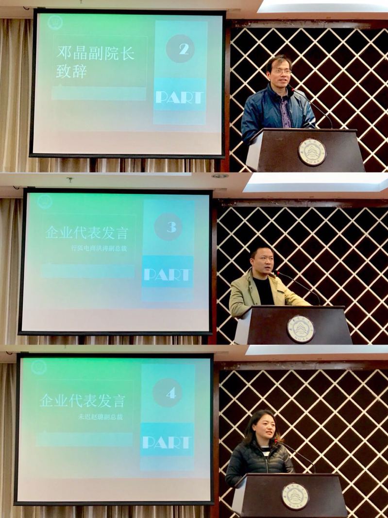 研究的课题分为校企联合和校内联合两部分,共设有13个课题,14支课题团队,其中团队横跨21个不同专业,实现了院与院同学间的交流和碰撞。启动仪式中邓晶副院长代表学院致辞。邓副院长强调,这是一次难得的机会,需要我们动手去做去实践的,借此机会能学到许多课堂上所学不到的知识与技能。同时也号召各位入选的课题负责团队认真对待。企业方面,行狐电商副总裁洪涛从企业的角度分析了电子商务创新区的价值。洪总希望各位同学在课题研究的同时,其成果能给企业带来利润,以此实现价值。未迟数字营销赵璐副总裁在发言中,希望同学们要多参与课题研究与创新,把握住学校提供的这些机会,多多实践,发现自己的闪光点和自己想为之付诸努力的职业方向。邓晶副院长为本次课题研究的指导老师颁布聘书;米传民老师为参与课题的团队代表授予任务书。