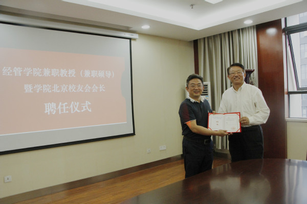座谈会中,周德群院长还为杜豪先生颁发了经管学院兼职教授暨经管学院北京校友会会长聘书。杜豪先生表示将在校友工作中不断加强与学院的交流,不断开拓校友工作的新局面。