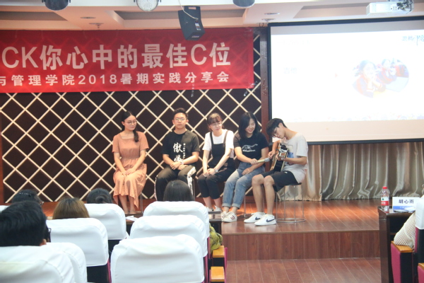 为了让同学们深入了解社会实践,学院举办了“再走实践路,重温我们的精彩”主题展览:楼梯间的手绘T恤、老照片等实践成果,激发了新生对暑期实践的兴趣。本次分享会围绕“传承之红”、“青春之蓝”、“公益之绿”三个篇章展开,小型话剧、诗朗诵、情景再现、主题演讲等丰富多彩的形式,为同学展现出经管学子在暑期社会实践大舞台上的风采。分享会还首次采用了现场投票方式评选出优秀团队,现场高潮迭起、互动紧密。