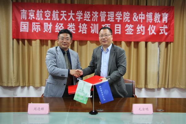 仪式上,周德群院长向与会嘉宾介绍了经管学院的发展、专业设置、人才培养情况等,他提到:多年来,学院一直秉承学科建设和在职培训“两手都要抓”“两手都要硬”的原则,非常重视学生的学术能力和实践能力的培养,也通过在职培训紧跟社会发展及需求,不断提高学院师资队伍和教师教学水平。这次与中博教育的合作,可以使双方更加深入地进行资源共享,共同开发课程、案例,共同提高在业界的口碑和经验。中博教育董事长毛金明回顾了创业十余年的历程,他非常认同南航学生“实干、创新、合作”的精神,也认为南航经管学院的办学理念,与中博教育非常吻合,希望签约后,能够通过中博项目为南航学子提供职前培训和向大企业推荐的机会。毛金明董事长表示中博教育将以本次国际财经类项目合作为契机,本着以为学员服务的原则,与院方共同培养更多国际财经类人才。