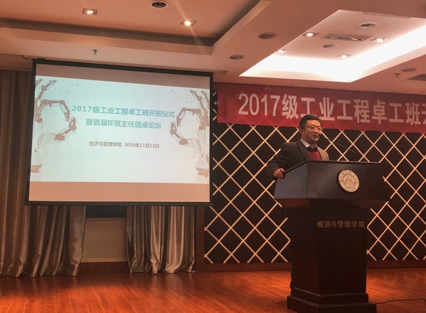 11月12日,2017级工业工程卓越工程师班开班典礼暨首届IE班主任论坛在BB贝博艾弗森官方网站A0305报告厅圆满举行,BB贝博艾弗森官方网站院长周德群、灰色系统研究所所长刘思峰、校教务处副处长朱建军、学院副院长邓晶、学院党委副书记涂志宏、管工系副主任虞先玉、17级卓工班班主任关叶青和十余位青年教师、各年级辅导员、全体卓工班学生参加了本次论坛。