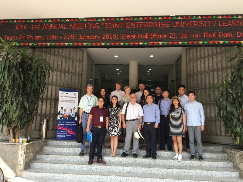 2019年1月19日至1月26日,国际合作处张卓处长、陈峰副处长、教务处孔垂谦处长、经管学院 王英副院长、何沙玮老师一行5人赴越南胡志明银行大学参加欧盟Erasmus+资助项目JEUL校企合作国际研讨会2019年会。