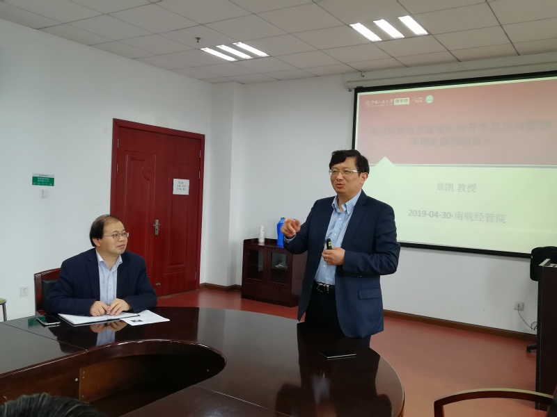 2019年4月30日上午,中国人民大学商学院章凯教授应贝博官网人力资源管理研究所的邀请,在学院702会议室作了题为“自组织目标系统理论的开发及其对管理学理论建构的启示”的学术报告。报告由胡恩华教授主持,东南大学经济管理学院的吕鸿江教授、BB贝博艾弗森官方网站的张龙教授、王凌云副教授等老师和研究生参加了本次学术讲座。