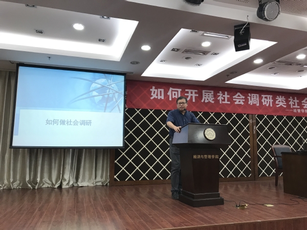 5月23日下午,BB贝博艾弗森官方网站2019年暑期社会实践社会调研类专题培训,暨院青马工程第三次理论培训在经管楼A0305报告厅举行。本次活动邀请了我校人文与社会科学学院鲁兴虎老师,开展了“如何开展社会调研类社会实践”专题培训。学院团委书记庞依达、各年级辅导员和近两百余名社会实践项目负责人、院青马工程学员一同参加了此次培训会。