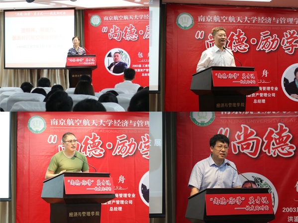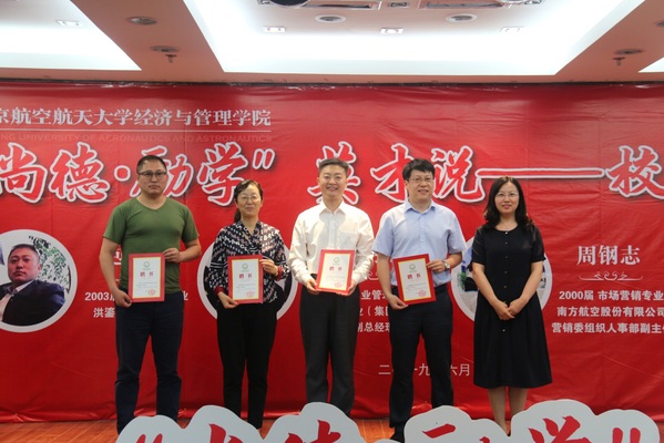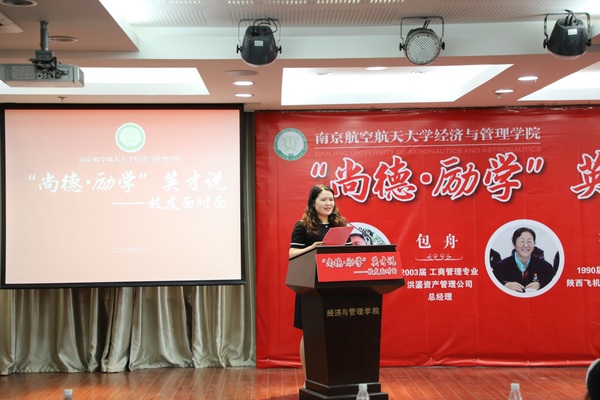 6月1日下午,BB贝博艾弗森官方网站“尚德•励学”英才说——校友面对面活动在学院 A0305 报告厅举行。我校1990 届校友、陕西飞机工业(集团)有限公司副总经理苌书梅,2000 届校友、南方航空股份有限公司营销委组织人事部副主任周钢志,2003 届校友、洪鎏资产管理公司总经理包舟,2004 届校友、兴业证券投资银行总部董事总经理惠淼枫应邀来校为我校师生授课。