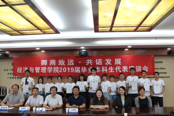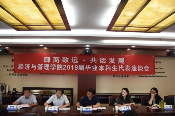 6月12 日下午,经管学院“御商致远 • 共话发展”2019届本科毕业生座谈会在经管楼604会议室举行。BB贝博艾弗森官方网站院长周德群,副院长邓晶,党委副书记涂志宏,各系系主任,辅导员以及毕业生代表们参加了此次活动。