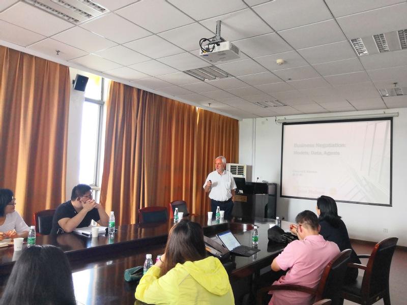 2019年6月27日下午,加拿大康考迪亚大学教授Kersten受学院智能决策与风险分析研究所邀请,在南航将军路校区BB贝博艾弗森官方网站706做了题为“Business Negotiations Agents,Model,Data”的讲座。学院教授徐海燕、教授陈洪转、副教授关叶青等教师及部分硕、博研究生现场聆听了教授Kersten的报告,本次学术报告由徐海燕老师主持。