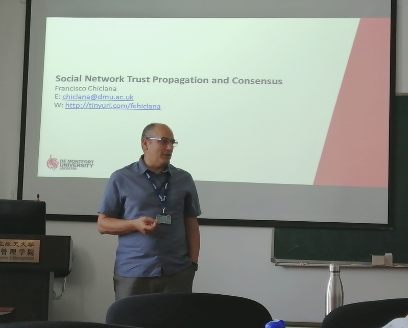 7月10日上午,英国德蒙福特大学教授Francisco Chiclana教授受贝博官网灰色系统研究所邀请,在BB贝博艾弗森官方网站704室作了题为“Social Network Trust Propagation and Consensus”的讲座。经管学院教授刘思峰等及部分硕、博研究生现场聆听了教授Francisco Chiclana的报告,本次学术报告由刘思峰主持。