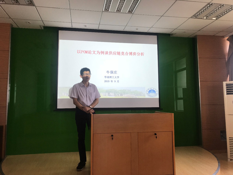 9月9日下午,华南理工大学教授牛保庄受贝博官网能源与环境经济研究所邀请,在BB贝博艾弗森官方网站702室作了题为“以POM论文为例谈供应链竞合博弈分析”的报告。本次学术报告由副院长王群伟主持,经管学院教授查冬兰、刘文杰等10余位教师及20余名硕士、博士研究生参加了报告会。