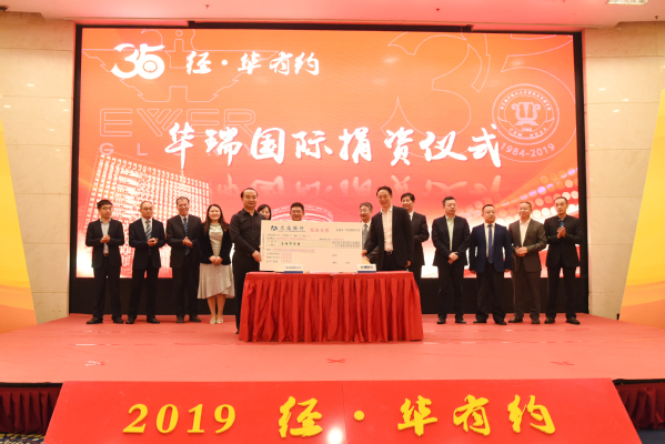 华瑞国际捐资以及华瑞商学院成立两大仪式揭开了看今朝的序幕。仪式一:为了进一步推动强强联合,经管与华瑞共同合作,成立华瑞商学院。由华瑞国际集团创始人康宜华先生、BB贝博艾弗森官方网站院长周德群教授共同为华瑞商学院揭牌。华瑞商学院未来将面向实战型精英人才开展专业化培训,同时进一步开发学院高级经理人发展课程,实现校企共同成长。仪式二:华瑞国际捐资仪式。华瑞国际历来重视回报社会,多年来做了大量的捐赠助学等公益事业,在联谊活动中,华瑞国际为经管捐资100万,用于学院奖助学金、奖教金、学科建设及科学研究,支持经管学院的建设与发展。80级校友、华瑞国际集团创始人康宜华先生、BB贝博艾弗森官方网站党委副书记、教育发展基金会理事长陶勇教授共同签署捐赠协议。两大仪式共同将现场气氛推向了新的高潮。