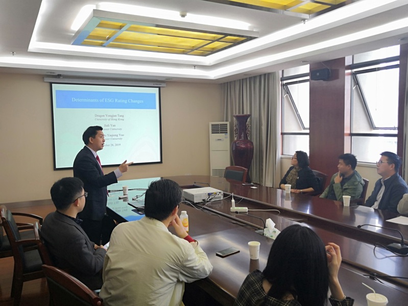 10月28日上午,香港大学汤勇军教授应学院金融研究所邀请,在南航将军路校区BB贝博艾弗森官方网站604作了题为“环境、社会及治理(ESG)评级变化的决定性因素”的学术报告。BB贝博艾弗森官方网站副院长王群伟、金融学科专业负责人教授段进东、经济系主任袁潮清、副主任徐菱涓、院长助理陆珩瑱、王建立、苏飞、魏悦羚等教师及数十名硕、博研究生现场聆听了汤勇军的报告。本次报告由王群伟主持。
