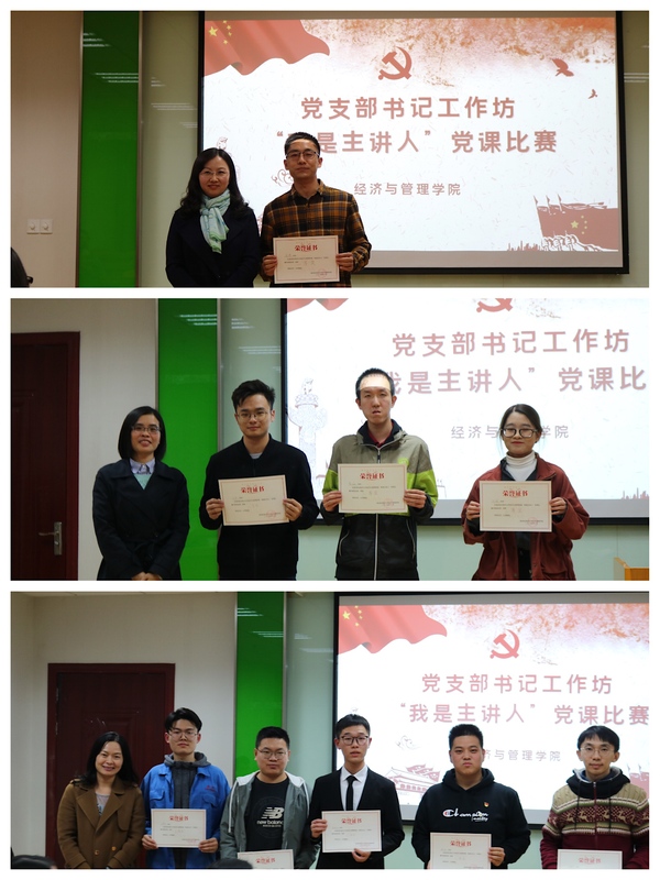 随后,评委们进行了集体评议,从党课主题、内容准备、课件设计、现场展示等方面对所有选手的表现进行了综合评议,最终评选出一等奖1名,二等奖3名,三等奖5名,现场嘉宾为获奖选手们颁发了奖状。