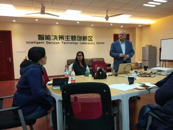 Adiel Teixeira de Almeida详细介绍了多准则偏好决策支持系统,调动了在场师生对该系统功能的兴趣,大家就该系统应用的多准则聚合折衷方法,需要的偏好信息等问题与Adiel Teixeira de Almeida进行了互动交流。活动结束后,大家仍意犹未尽,争相与Adiel Teixeira de Almeida进行了合影留念。
