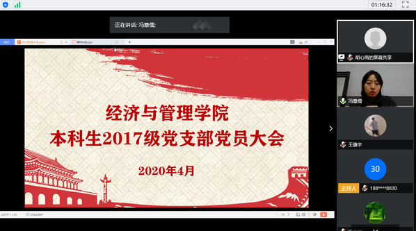 为响应习近平总书记在对北京大学援鄂医疗队回信中对青年提出的期望和要求,提升党支部成员的奉献意识、家国情怀,2020年3月18日,BB贝博艾弗森官方网站本科生17级党支部举行“让青春在党和人民最需要的地方绽放绚丽之花”线上党日活动,学院党委副书记涂志宏参加会议。