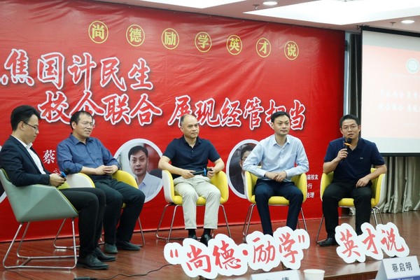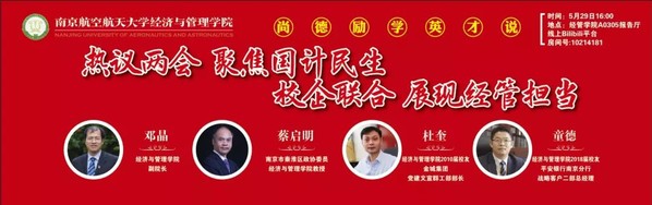 5月29日下午,BB贝博艾弗森官方网站于A0305 报告厅举行“尚德·励学”英才说校友师生共话两会活动。学院副院长邓晶,南京市秦淮区政协委员、管理科学与工程系教授蔡启明,我校2010届校友、金城集团党建文宣群工部部长杜奎,我校2018届校友、平安银行南京分行战略客户二部总经理童德,共同围绕“热议两会,聚焦国计民生;校企联合,展现经管担当”主题与学院师生展开交流讨论。