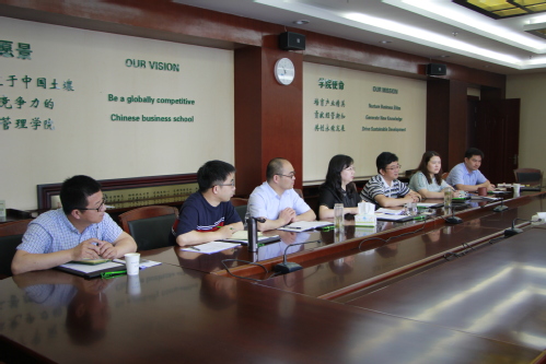 6月17日国际合作处处长张卓、副处长沈敏、综合事务科科长祖语嫣一行来BB贝博艾弗森官方网站调研,经管学院党委书记焦宏图、院长周德群、院党委副书记涂志宏、副院长王子龙、王群伟、谢乃明、院长助理陆珩瑱、院国际合作秘书许志卓参加了此次调研。
