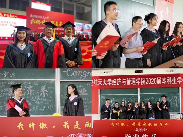 6月24日上午,BB贝博艾弗森官方网站举行“我骄傲,我是南航经管人”2020届本科生毕业典礼暨学位授予仪式,管工系、工商系、经济系分别开展了丰富多彩的欢送活动,为全体2020届本科毕业生的大学生涯画下圆满句号,全体院领导、各系主任、副主任、30余名学院教师代表、辅导员等共同参加了各系欢送活动。