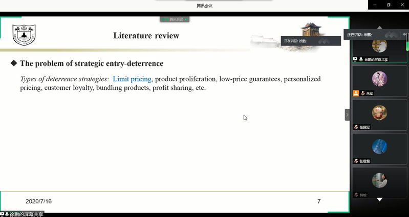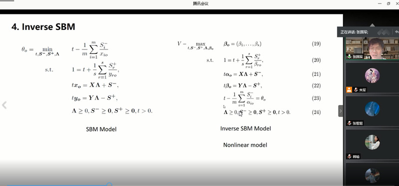 7月16日下午,青年学生张国军、王鑫、徐鹏受学院智能决策与风险分析研究所邀请,在腾讯会议分别作了题为A General Inverse DEA Model for Non-radial DEA、Target-oriented Robust Location-Transportation Problem、Pricing and entry strategies for competitive firms with managerially optimistic entrant的讲座。贝博官网教授徐海燕、谢乃明、朱建军等教师及部分硕、博研究生线上参加了张国军、王鑫、徐鹏的报告分享,本次学术报告由徐海燕主持。
