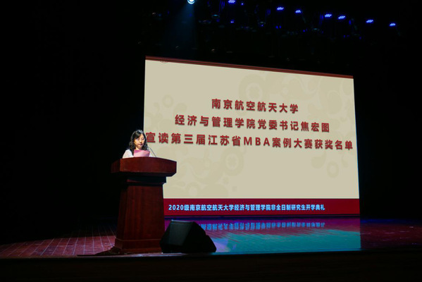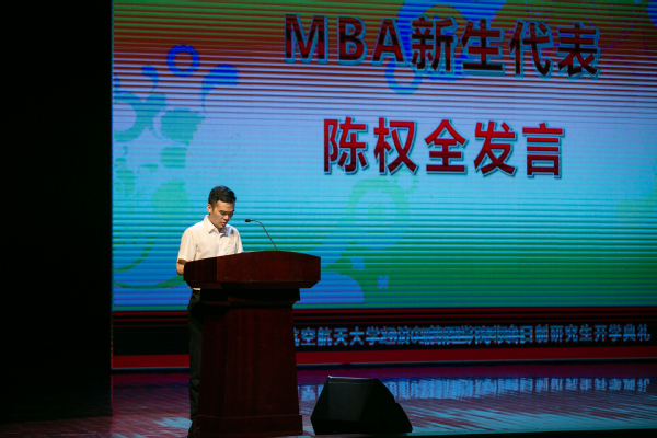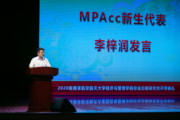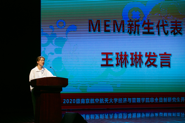 2020级MBA学生陈权全、MEM学生王琳琳、MPAcc学生李梓润代表全体新生发言。陈权全表示,南航MBA“培养学有专攻、富有远见、高尚敬业的中高层管理人才和创新创业精英”的培养目标吸引了他,1号楼闪闪发光的校名始终激励着他,希望身处内外部环境巨变中的同学们在研究生学习期间一起努力,能够抓住一切可以提升自身能力的机会,从知识、眼界、待人接物各方面提升自己的综合素养,努力践行“严谨务实作风、全面过硬素质、笃定高远志向”的MBA使命,最终都能成为自己所在行业的领航者。本科毕业于BB贝博艾弗森官方网站机电学院的王琳琳对20年后能够以学生身份重返南航校园倍感荣幸,非常珍惜这段难得的学生时光,希望在3年后能够收获一个不一样的自己,成为母校的骄傲。李梓润对未来的研究生生涯充满希翼,希望大家携手并进,扬帆起航,为自己的人生谱写新的华章。