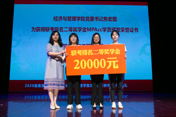 MPAcc新生代表李梓润发言BB贝博艾弗森官方网站党委书记焦宏图宣读获得2020级奖学金名单,案例大赛获奖名单,研究生院常务副院长徐正扬、BB贝博艾弗森官方网站党委书记焦宏图、副院长王子龙分别为获奖同学颁奖。