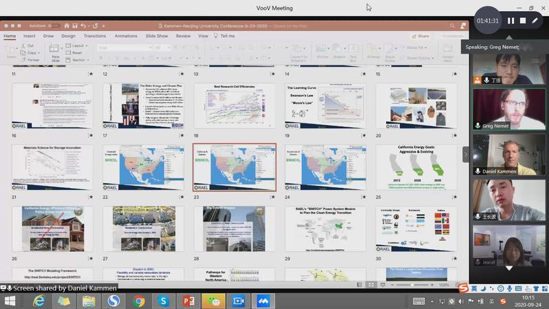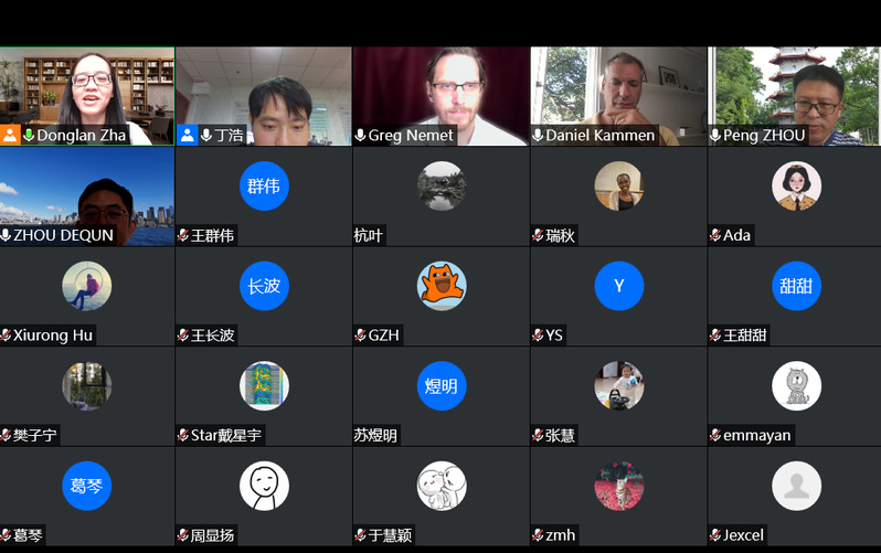 9月24号上午,美国加州大学伯克利分校教授Daniel M. Kammen和威斯康星大学麦迪逊分校教授Gregory F. Nemet受贝博官网能源与环境经济研究所邀请,在腾讯会议(会议ID:764 011 583)作精彩讲座。BB贝博艾弗森官方网站教授周德群、王群伟、查冬兰及其他教师代表、硕博研究生认真听取了Kammen和Nemet的报告,本次学术报告由查冬兰主持。