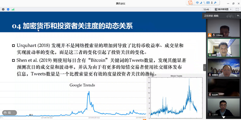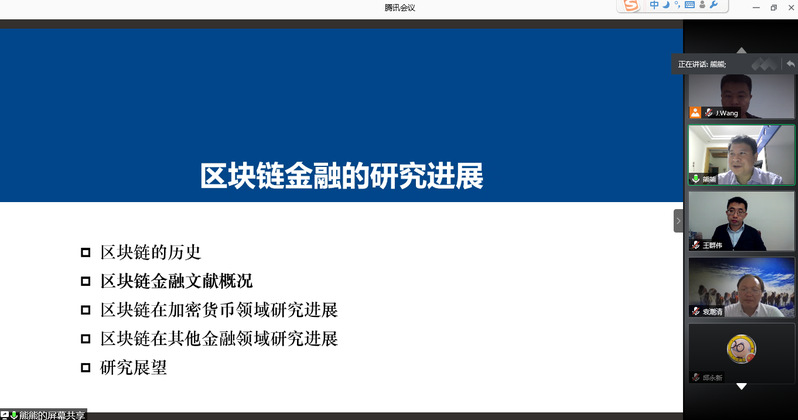 10月12日,天津大学教授熊熊应学院金融研究所邀请,在线为我校师生作了题为“区块链金融研究进展”的精彩学术讲座。本次讲座由金融研究所所长王建立主持。BB贝博艾弗森官方网站副院长王群伟、教授袁潮清、朱庆缘、副教授桑秀芝、陆珩瑱、讲师苏飞等教师及部分硕、博研究生共一百四十多人参加了本次学术交流。