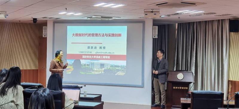 11月25日下午,国防科技大学教授谭跃进受学院智能决策与风险分析研究所邀请,在南航将军路校区经管辅楼A0405作了题为“大数据时代的管理方法与实践创新”的讲座。贝博官网教授徐海燕等教师及部分硕、博研究生现场聆听了谭跃进的报告分享,本次学术报告由徐海燕主持。