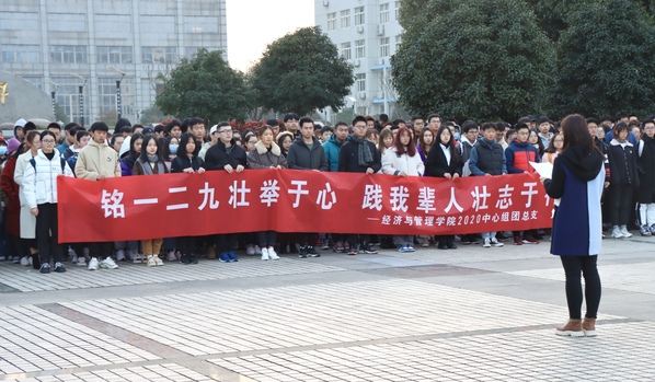 随后,2020级中心组团总支全体成员进行了“铭记•传承”一二•九主题诗朗诵。“被热血和烈火炽烤的国土,已失去母性的温柔。”由沉痛到激昂,全体同学仿佛又置身于一二•九的波澜壮阔之中,再体会青年人的责任与担当。