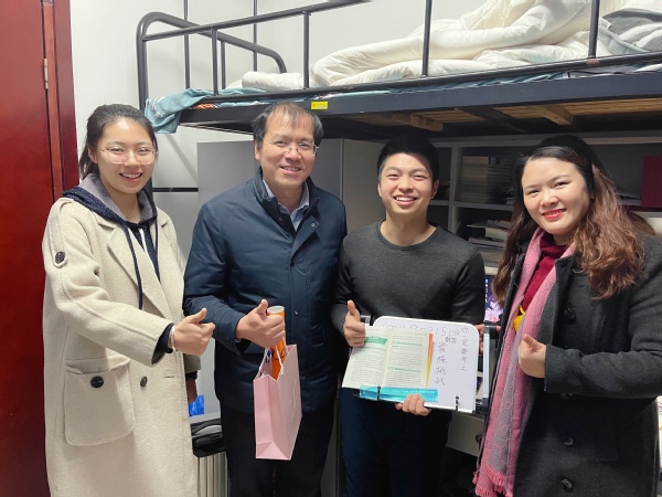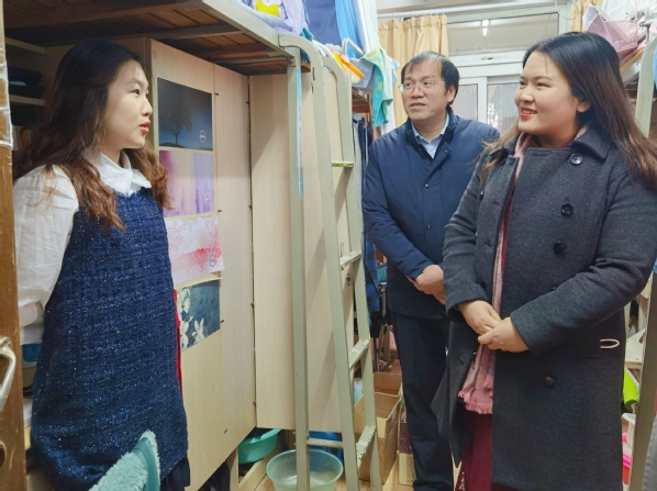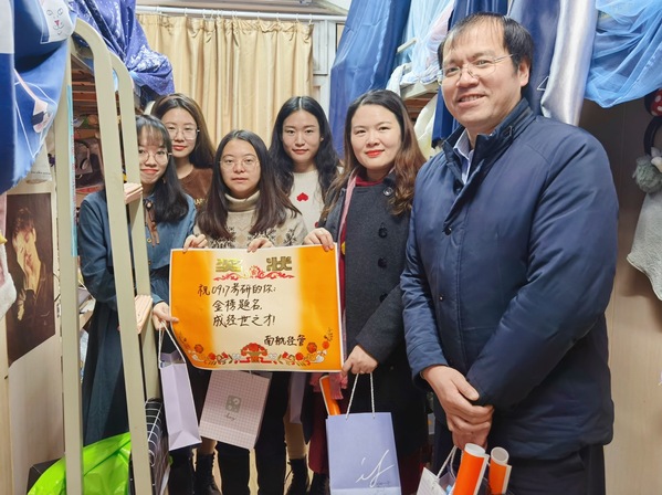 12月8日上午,BB贝博艾弗森官方网站党委副书记涂志宏、副院长邓晶、2017级本科生辅导员胡心雨、朱一豪共同到宿舍看望考研学生,为各位学子带去一份温暖、增添一份动力。